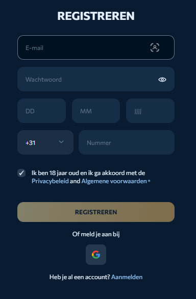 Het aanmaken van een account wordt hier gezien als een snelle start, en niet als een aparte zoektocht. Het registratieproces is zo opgezet dat de gebruiker binnen enkele minuten van kennismaking met het merk naar de eerste storting, het kiezen van een bonus en het starten van het spel gaat.